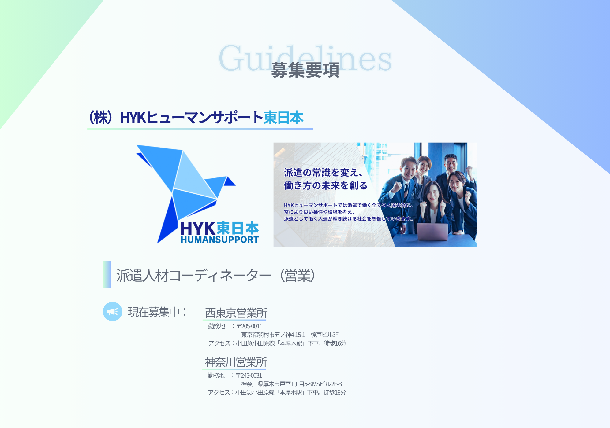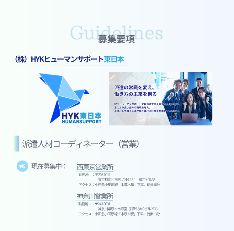 2025.05.29 名古屋営業所(派遣人材コーディネーター)の募集を追加いたしました。